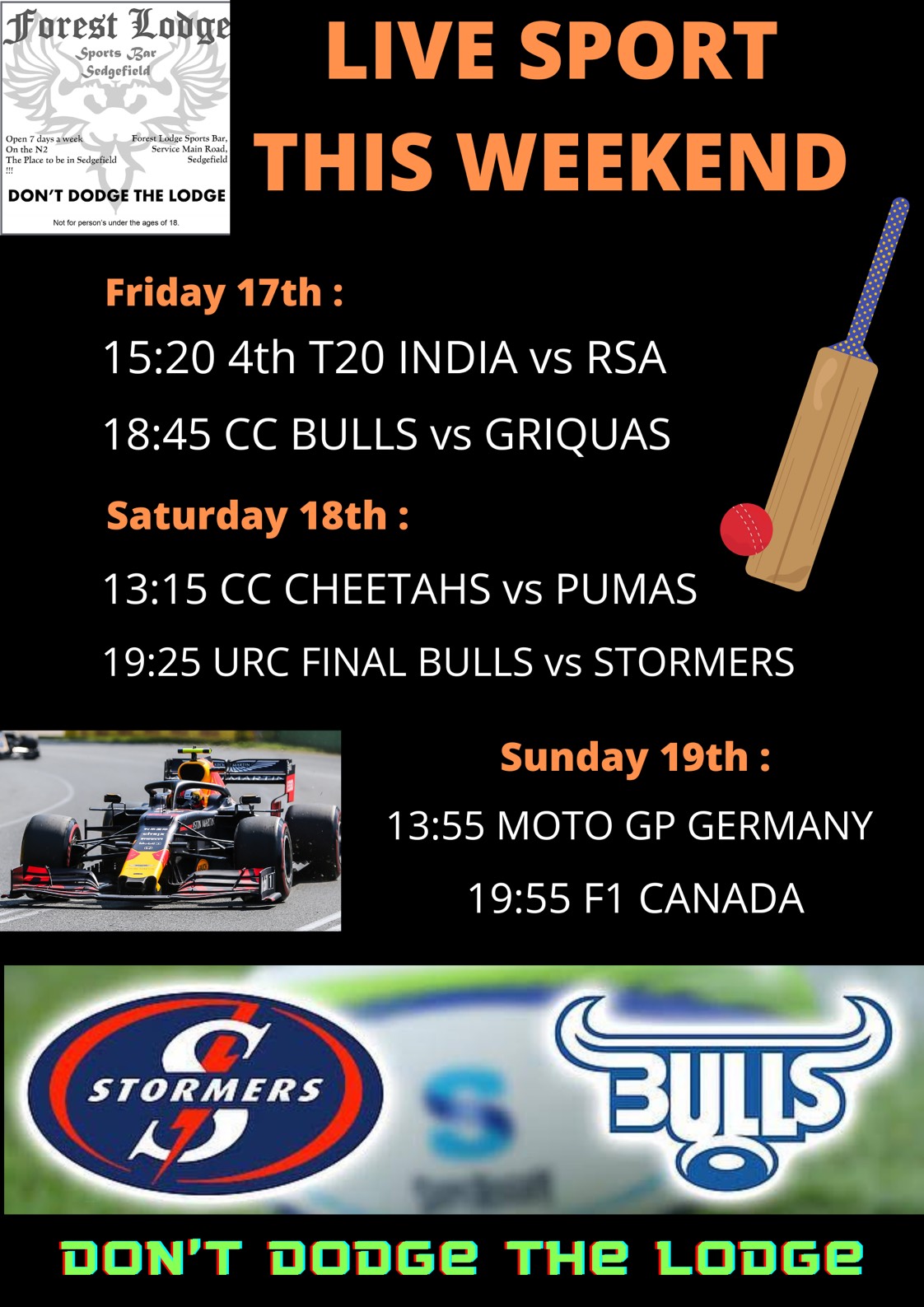 LIVE SPORT THIS WEEKEND @ FOREST LODGE!