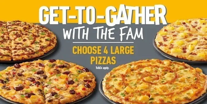 Get 4 large (30 cm) pizzas