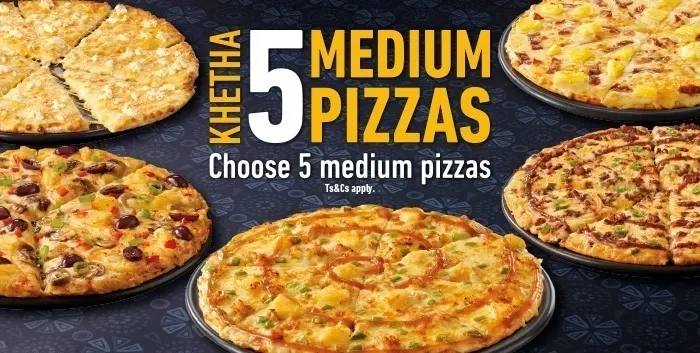 Get 5 medium (23 cm) pizzas