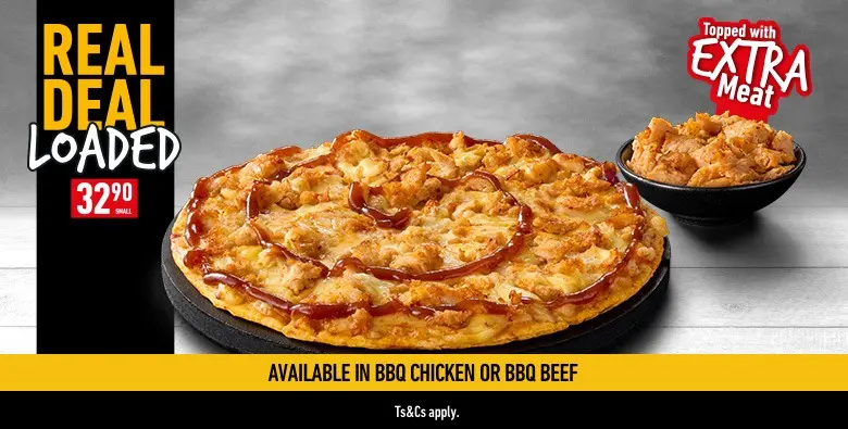 The most amazing lunch idea you’ve had in a while is here: the Real Deal Loaded pizza topped with EXTRA meat—for just R32.90!