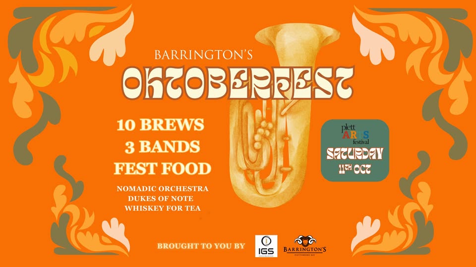 Celebrating Barrington’s Oktoberfest with the craft of beer and of the art original music! Dust off your lederhosen! It’s time to boogie, beer and play, ja! Join us at Barrington’s for an afternoon of serious revelry. Featuring the legendary sounds of two of Cape Town’s most original performance ensembles, “Nomadic Orchestra” and “The Dukes of Note”, and opening with Plett’s very own “Whiskey For Tea”, the Barrington’s Oktoberfest is set to be an afternoon of epic merry making.