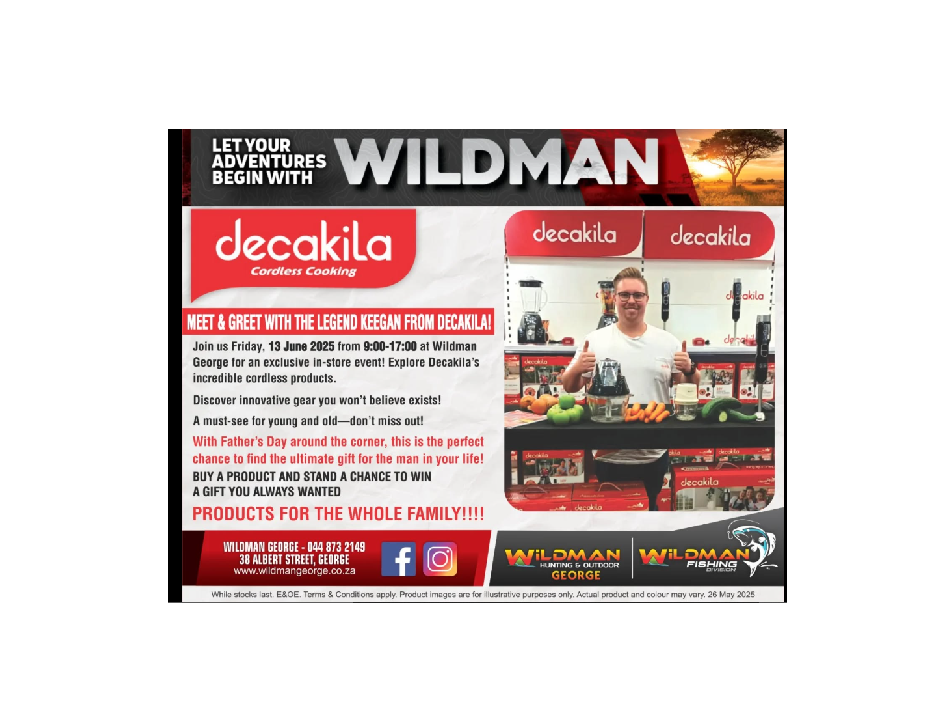 Get ready for an exciting day as we welcome the one and only Keegan from Decakila to Wildman George! This is your chance to meet the legend behind some of the most trusted gear in the industry, ask your questions, get expert tips, and see Decakila products in action!