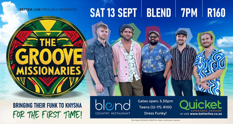 Cycling through decades of classics and all-time popular hits, they are the party band that guarantees to get your feet moving and your soul grooving. Join the mission — bring your best moves and ‘lekker vibes’ to Blend on Saturday 13 September!