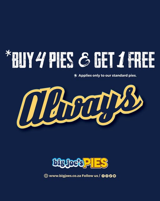 Big Joe's Pies At Big Joe’s, we’re all about bringing you delicious, hearty pies made the old-fashioned way – with quality ingredients, generous fillings, and flaky golden pastry. Whether you’re grabbing a quick lunch or feeding the family, there’s a pie for everyone!