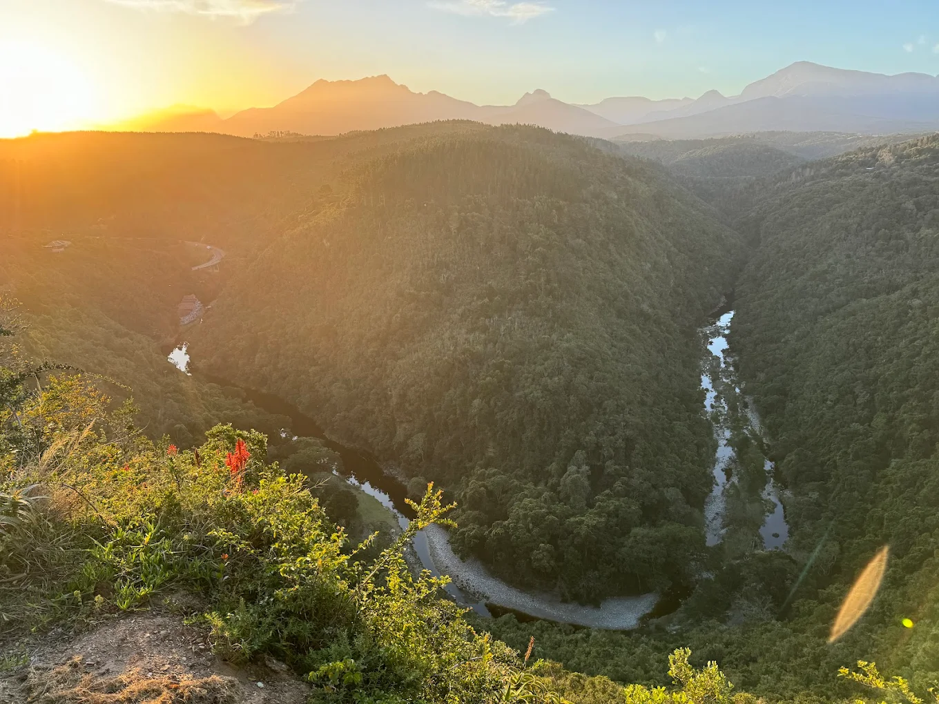 High above the village of Wilderness lies one of the Garden Route’s most remarkable and awe-inspiring sights – the Map of Africa – Wilderness. True to its name, this breathtaking natural formation resembles the shape of the African continent, carved out by the winding Kaaimans River and framed by lush, indigenous forest.