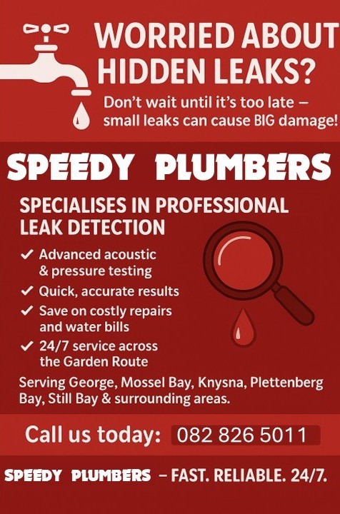 Speedy Plumbers in George offers you 24/7 support. Whether it’s a burst pipe, a burst geyser, or a hidden water leak, our plumbers are ready to handle your toughest challenges. We’ll help you get your plumbing working like new again in no time.