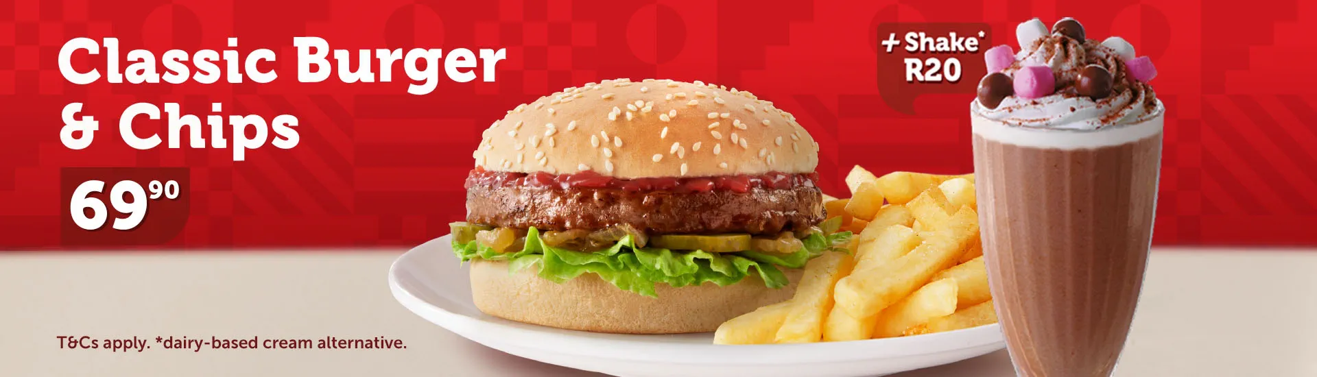 Some places make you book a table. Others turn you away for wearing flip-flops. Not us. Here, the only thing you need is an appetite to get your hands on a Classic Burger & Chips for just R69.90.